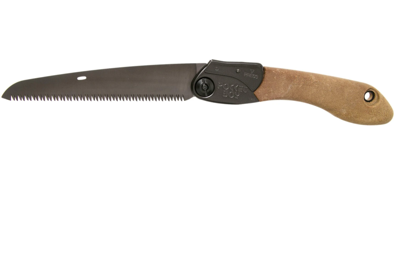Das Silky Pocketboy Outback Edition ist eine Version des Silky Pocketboy, die speziell für den Gebrauch durch Jäger und Bushcrafter entwickelt wurde. Es ist nicht nur für Holz geeignet, man kann damit auch Knochen durchsägen. Diese Säge ist kompakt und leicht, so dass Du sie problemlos überallhin mitnehmen kannst. Mit der Arretierungstaste kannst Du die Klinge in zwei verschiedenen Schneidpositionen arretieren. Ist die Säge eingeklappt? Dann sind die scharfen Sägezähne sicher vom Griff bedeckt. Im Lieferumfang der Säge ist ein Hartschalen-Holster enthalten.